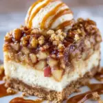 Indulge in the rich medley of flavors in these Caramel Apple Cheesecake Bars, featuring a creamy cheesecake layer atop a buttery crumble, with fresh apples and warm spices.