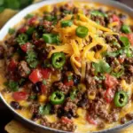 As you dip your tortilla chip into the bubbling, cheesy concoction, the layers of flavor unfold beautifully. The cheese melts into a velvety smoothness, while the ground beef offers a robust meaty essence. The black beans and corn add subtle sweetness and a hint of crunch, harmonizing perfectly with the zesty diced tomatoes and a touch of spices. Each bite delivers a satisfying richness that wraps around your senses, transporting you to the wide-open plains where a hearty meal is more than nourishment; it’s a celebration of life.