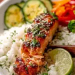 - Lime wedges for serving: A burst of lime adds brightness and balances the richness of the salmon and coconut rice.