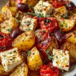 Baked Feta Potatoes are a vibrant and flavorful dish that combines golden-baked potatoes with creamy feta and sweet cherry tomatoes, delivering a taste of the Mediterranean.