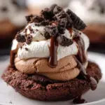 Decadent cookies infused with chocolate, filled with a silky mousse, and topped with whipped cream and chocolate curls.