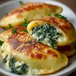 Warm, buttery potato pockets filled with creamy cream cheese and spinach, offering a perfect blend of textures and flavors.
