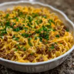 Sour Cream Beef Noodle Casserole is a hearty and comforting dish that combines tender beef, creamy sour cream, and egg noodles, baked to perfection.