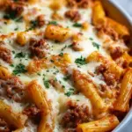 The versatility of this baked ziti shines bright. You can elevate it with gourmet cheeses or play with flavors by adding vegetables or proteins. It’s an exquisite choice for any occasion, be it a weeknight dinner or a festive celebration. Beyond its deliciousness, this recipe embraces the beauty of sharing food. It invites friends and family to gather around the table, creating bonds over stories and laughter while savoring each creamy, cheesy bite. This dish’s grandeur leaves a lasting impression, ensuring you turn heads and tickle taste buds all around.